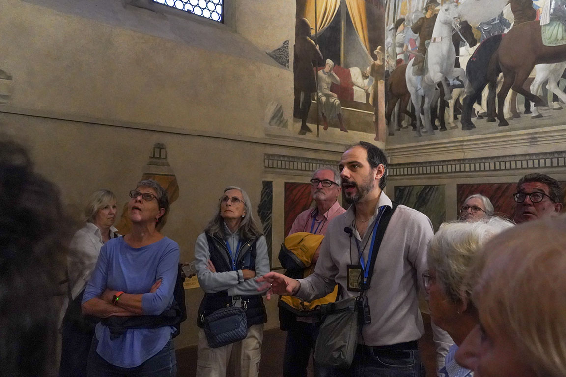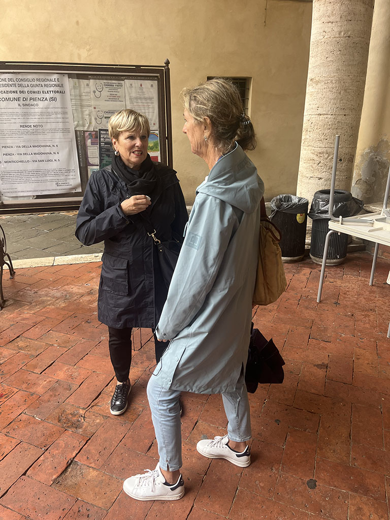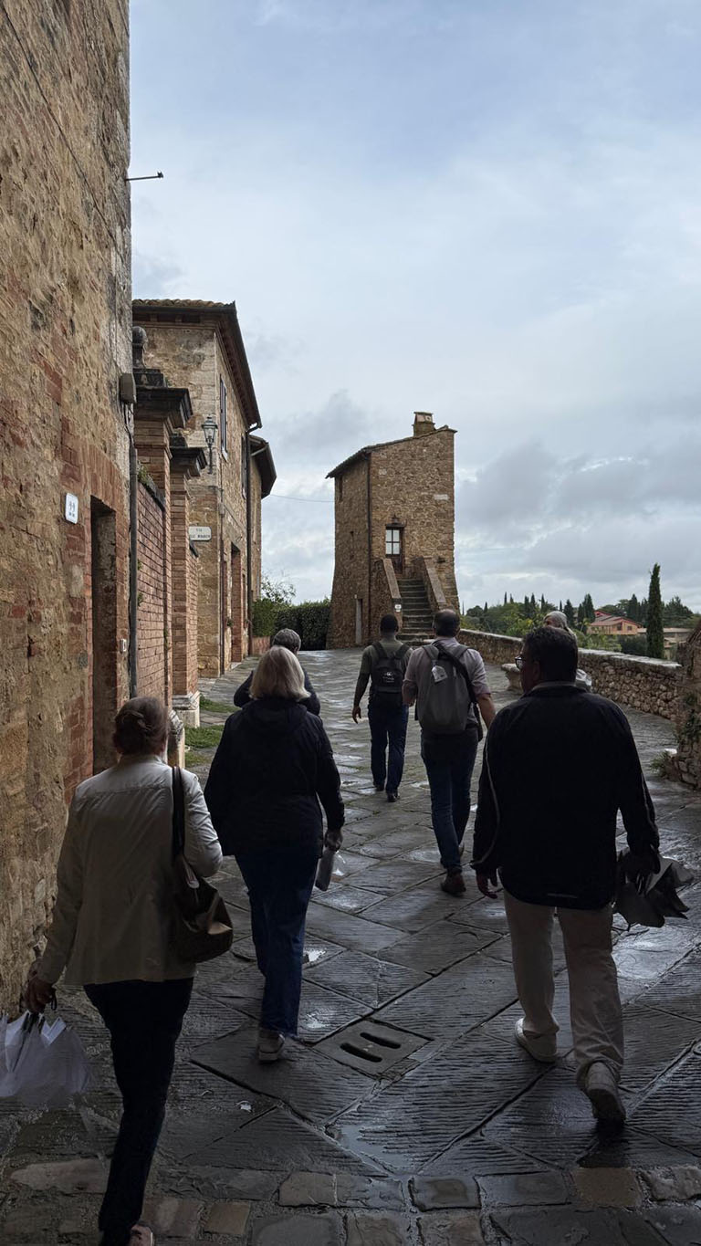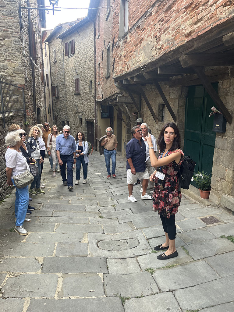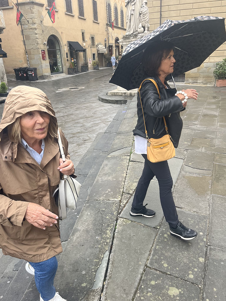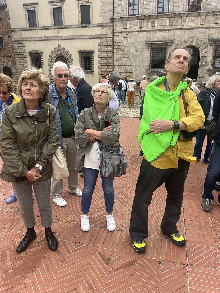 Giornate di grande intensità e di grande bellezza. Viaggio d'andata verso Arezzo. Angelo, l'autista, si è rivelato brillante e molto attivo, oltre a garantire una guida tranquilla e sicura. Primio contatto con Arezzo (albergo centrale e perfetto e cena tutti insieme con pietanze ottime e una tagliata eccellente, solo il vino lasciava a desiderare, ma l'intervento di Marisa ha sistemato le cose. Il secondo giorno (Montepulciano, Pienza e San Quirico d'Orcia) ci ha portato alla scoperta di località meravigliose e suggestive, che nemmeno la pioggia battente ha disturbato più di tanto. Cena al ristorante La Pieve, ottima e abbondante, come si suol dire. Terzo giorno con visita ad Arezzo e partenza con il botto nella cappella Bacci nella chiesa di San Francesco, meraviglia delle meraviglie con la Leggenda della Vera Croce di Piero della Francesca, un capolavoro mozzafiato. Ma Arezzo, località meno battuta dal turismo rispetto ad altre, ha una storia e testimoninianze eccezionali, che le nostre guide Axel e Sandra ci hanno illustrato con grande passione e perizia. Veloce trasferta in bus per raggiungere la tenuta Frassineto con degustazione di vini e naturalmente anche acquisti in abbondanza. Il pomeriggio poi è stato dedicato a Cortona, gioiello assoluto in una regione dai borghi medievali stupendi. Ultimo giorno con alcune ore a Siena, tra il Duomo, il Campo e i vicoli del centro, questo sì affollato di turisti e infine ritorno alla base. Come si diceva nei componimenti delle scuole elementari: stanchi, ma contenti, tornammo a casa. Grazie a Marisa e Mirta, perfette organizzatrici e Teresa, eccellente supporto organizzativo sul posto.