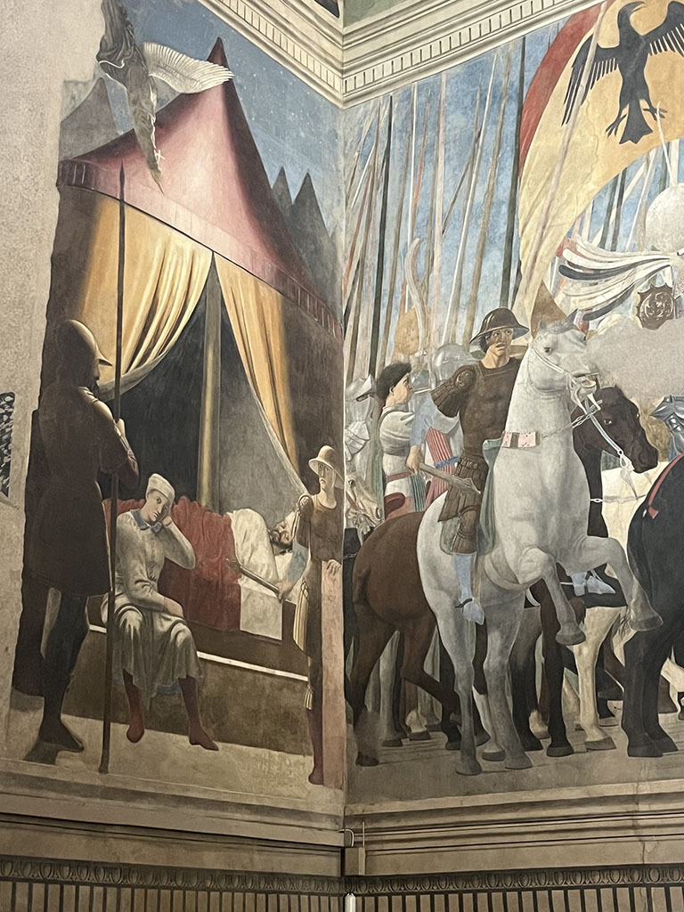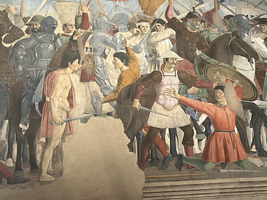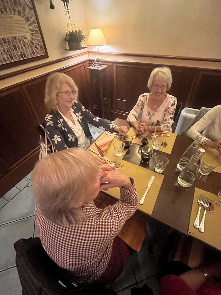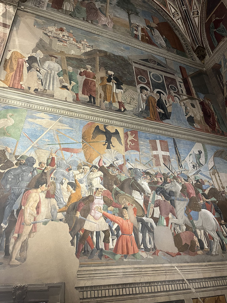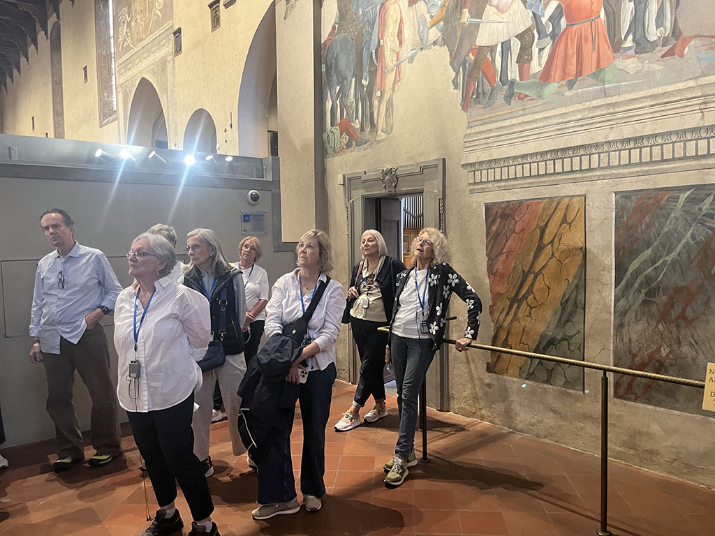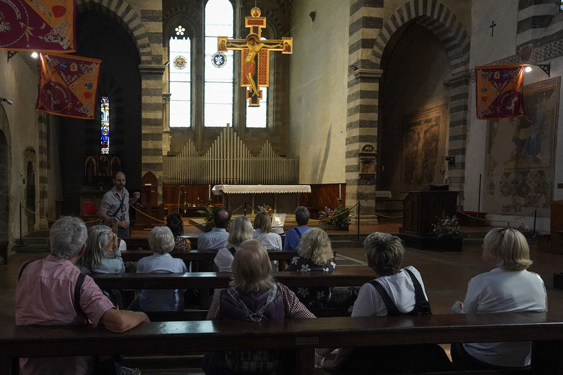 Giornate di grande intensità e di grande bellezza. Viaggio d'andata verso Arezzo. Angelo, l'autista, si è rivelato brillante e molto attivo, oltre a garantire una guida tranquilla e sicura. Primio contatto con Arezzo (albergo centrale e perfetto e cena tutti insieme con pietanze ottime e una tagliata eccellente, solo il vino lasciava a desiderare, ma l'intervento di Marisa ha sistemato le cose. Il secondo giorno (Montepulciano, Pienza e San Quirico d'Orcia) ci ha portato alla scoperta di località meravigliose e suggestive, che nemmeno la pioggia battente ha disturbato più di tanto. Cena al ristorante La Pieve, ottima e abbondante, come si suol dire. Terzo giorno con visita ad Arezzo e partenza con il botto nella cappella Bacci nella chiesa di San Francesco, meraviglia delle meraviglie con la Leggenda della Vera Croce di Piero della Francesca, un capolavoro mozzafiato. Ma Arezzo, località meno battuta dal turismo rispetto ad altre, ha una storia e testimoninianze eccezionali, che le nostre guide Axel e Sandra ci hanno illustrato con grande passione e perizia. Veloce trasferta in bus per raggiungere la tenuta Frassineto con degustazione di vini e naturalmente anche acquisti in abbondanza. Il pomeriggio poi è stato dedicato a Cortona, gioiello assoluto in una regione dai borghi medievali stupendi. Ultimo giorno con alcune ore a Siena, tra il Duomo, il Campo e i vicoli del centro, questo sì affollato di turisti e infine ritorno alla base. Come si diceva nei componimenti delle scuole elementari: stanchi, ma contenti, tornammo a casa. Grazie a Marisa e Mirta, perfette organizzatrici e Teresa, eccellente supporto organizzativo sul posto.