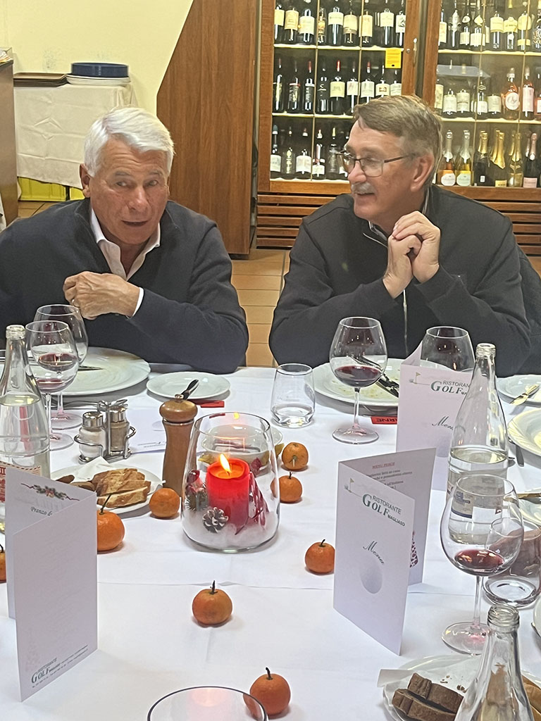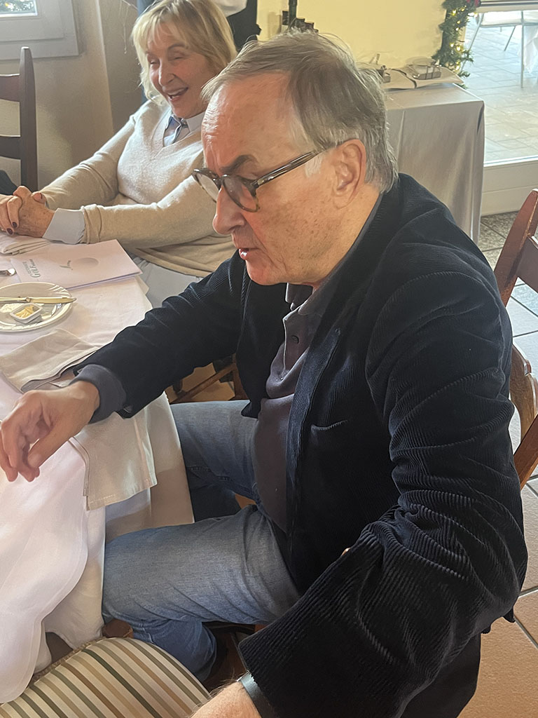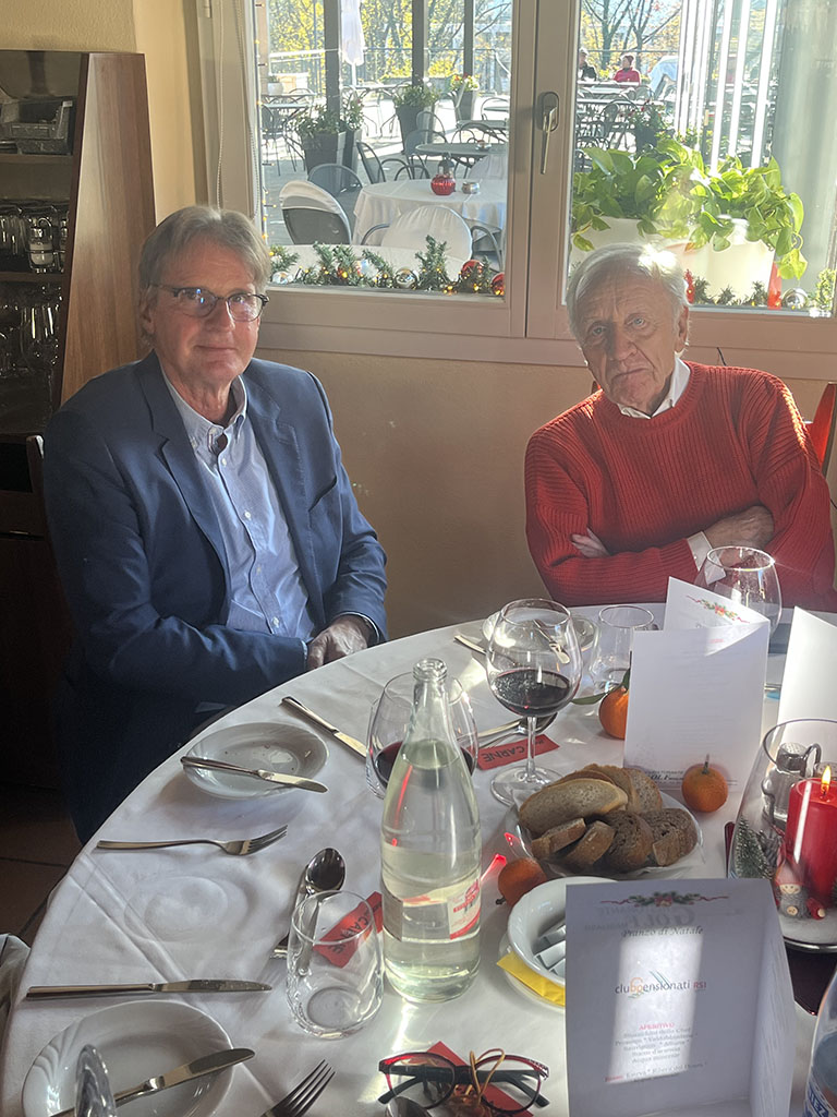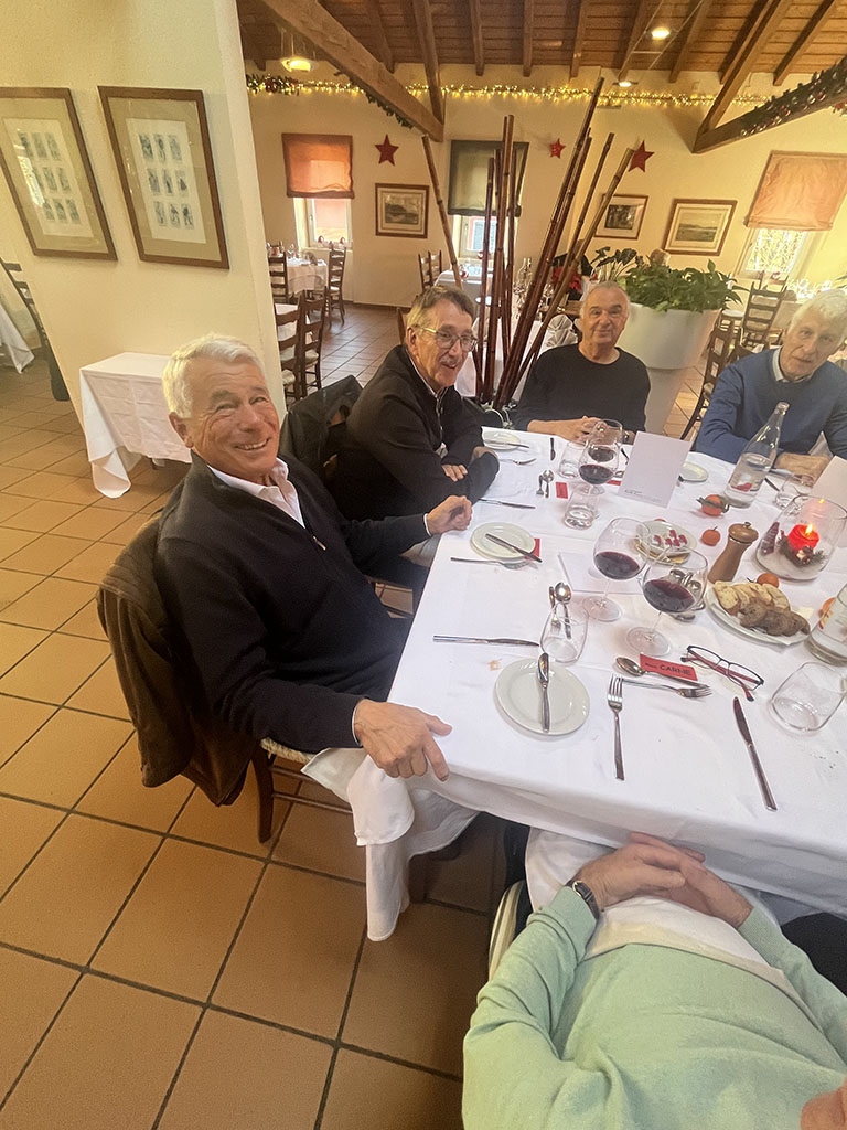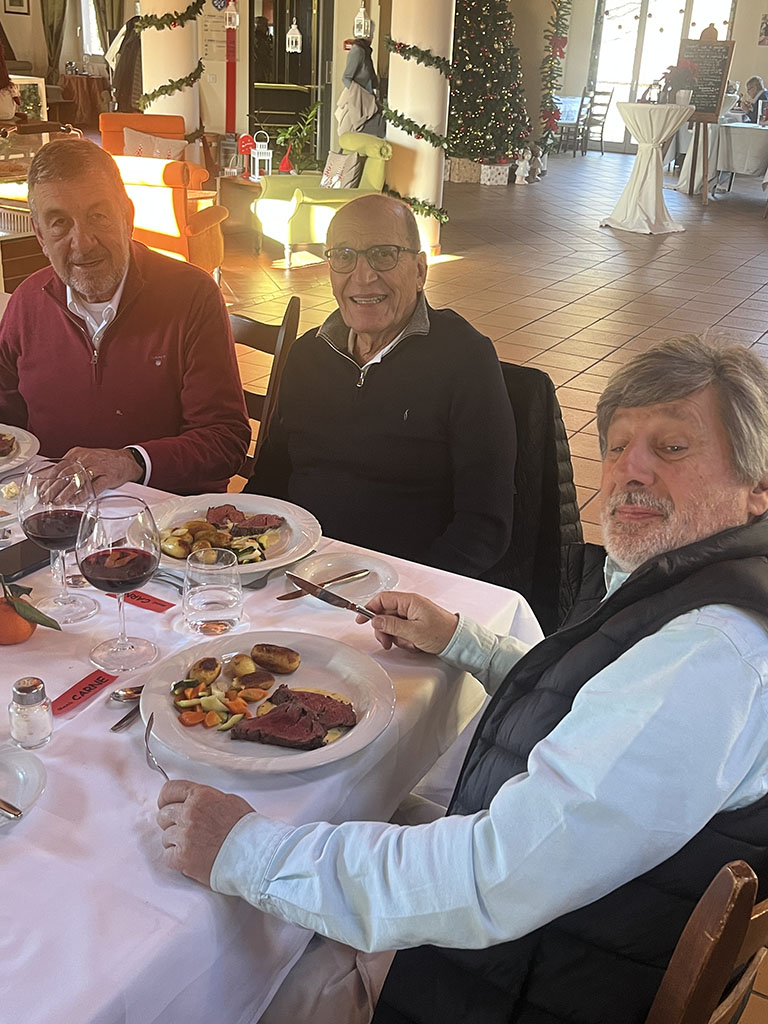 Una cinquantina di soci presenti al classico pranzo annuale, come ormai tradizione vuole, al ristorante del Golf di Magliaso con la consueta ospitalità e qualità del servizio dei coniugi Pereira e della loro brigata di cucina. Tagliolini ai carciofi e pomodorini, filetto con salsa béarnaise (oppure gamberoni al curry) e semifreddo all'amaretto, prima del classico amarone. Clima gioviale e rilassato, come in ogni occasione di incontro. Saluti, brindisi e appuntamento al panettone del 10 dicembre.