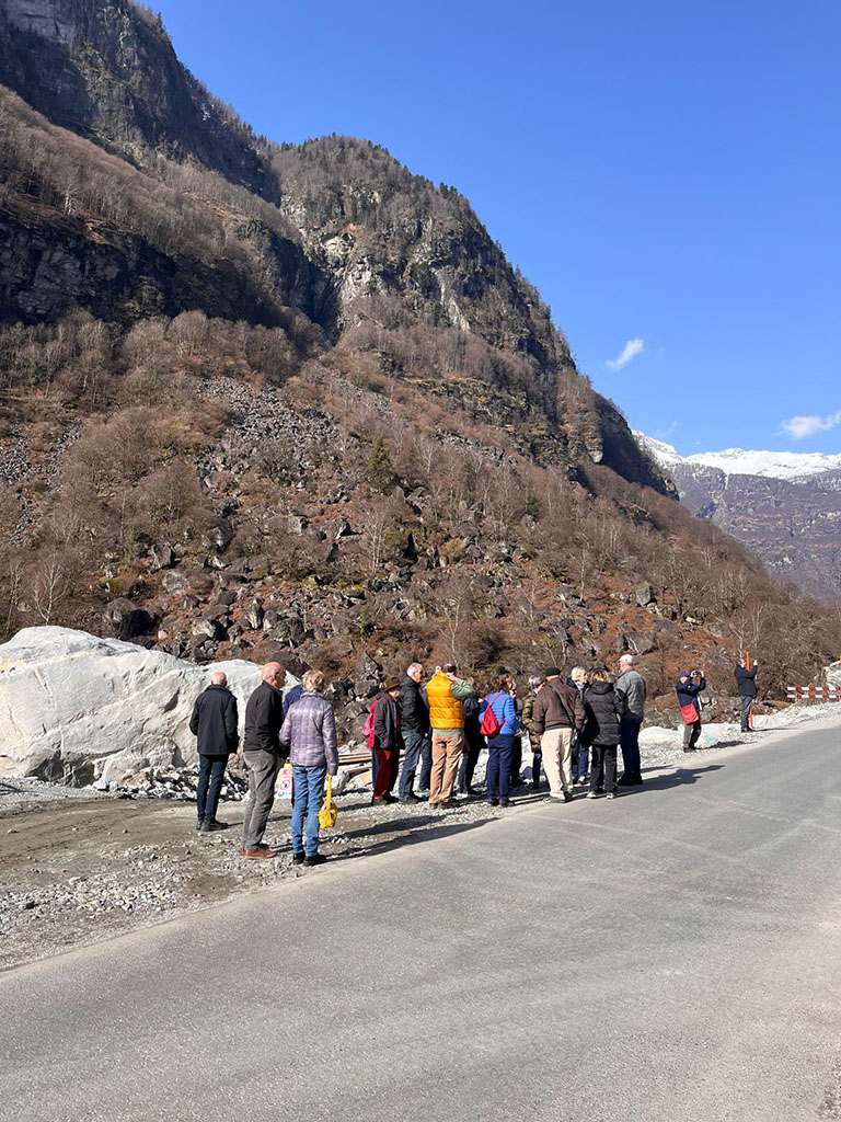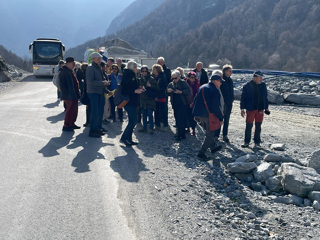 La trasferta nelle Valli Bavona, Val Rovana e Lavizzara, colpite dalla devastante catastrofe naturale abbattutasi sulla regione nella notte tra sabato 20 e domenica 30 giugno  2024, è certamente tra le più toccanti che il nostro Club ha effettuato negli ultimi anni. Solo recandoci sul posto, e nonostante da quella tragedia sia trascorso oltre un anno e mezzo, è stato possibile rendersi visivamente conto del disastro. Ancora oggi intere aree  sono ricoperte da massi, in parte enormi, che hanno travolto case, stalle, aree boschive, lasciando sul terreno 7 morti e una persona tuttora dispersa. Ad accoglierci, la Sindaca di Cevio Wanda Dadò, che ha voluto fermarsi a pranzo con il nostro gruppo ringraziando la RSI per quanto fatto sin dalle primissime ore e dando una testimonianza toccante di quei giorni difficilissimi. In mattinata, il Tecnico comunale Mattias Janner ci ha accompagnati in Val Bavona, raggiungendo uno dei punti più colpiti dall’alluvione (zona Fontana/Mondada, dove vennero ritrovate 5 delle 7 vittime), illustrata con aneddoti toccanti. Sul cantiere del Ponte di Visletto https://www4.ti.ch/dt/dc/temi/cantieri/progetti/ricostruzione-del-ponte-di-visletto i funzionari del Dipartimento del Territorio ci hanno spiegato quanto fatto sinora e quanto in programma per restituire alla valle un accesso viario essenziale.Dopo l’ottimo pranzo all'Osteria Castello di Cevio, seconda tappa al Piano di Peccia e a Prato Sornico, dove, guidati da Mauro Barzaghi, Municipale di Lavizzara, abbiamo visitato la pista di ghiaccio provvisoria, inaugurato appena 6 mesi dopo la tragedia, vero e proprio centro aggregativo e sociale per l’intera regione.