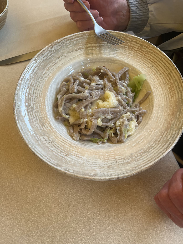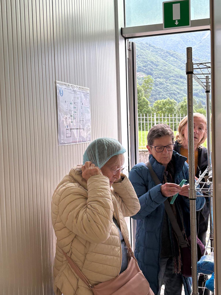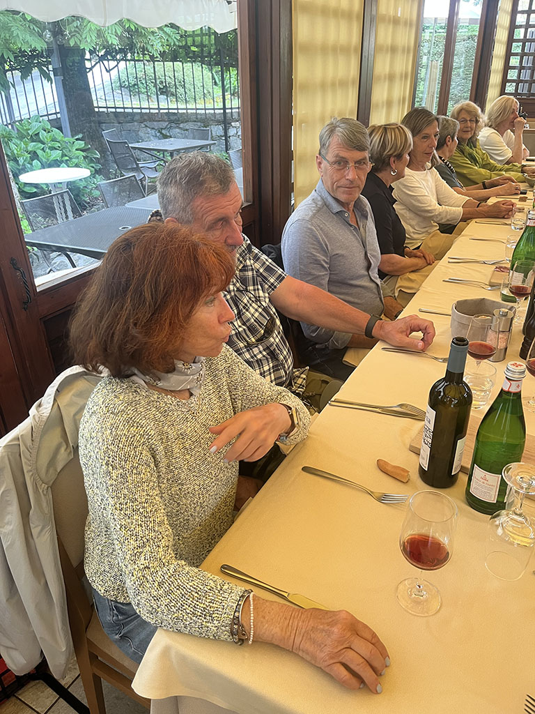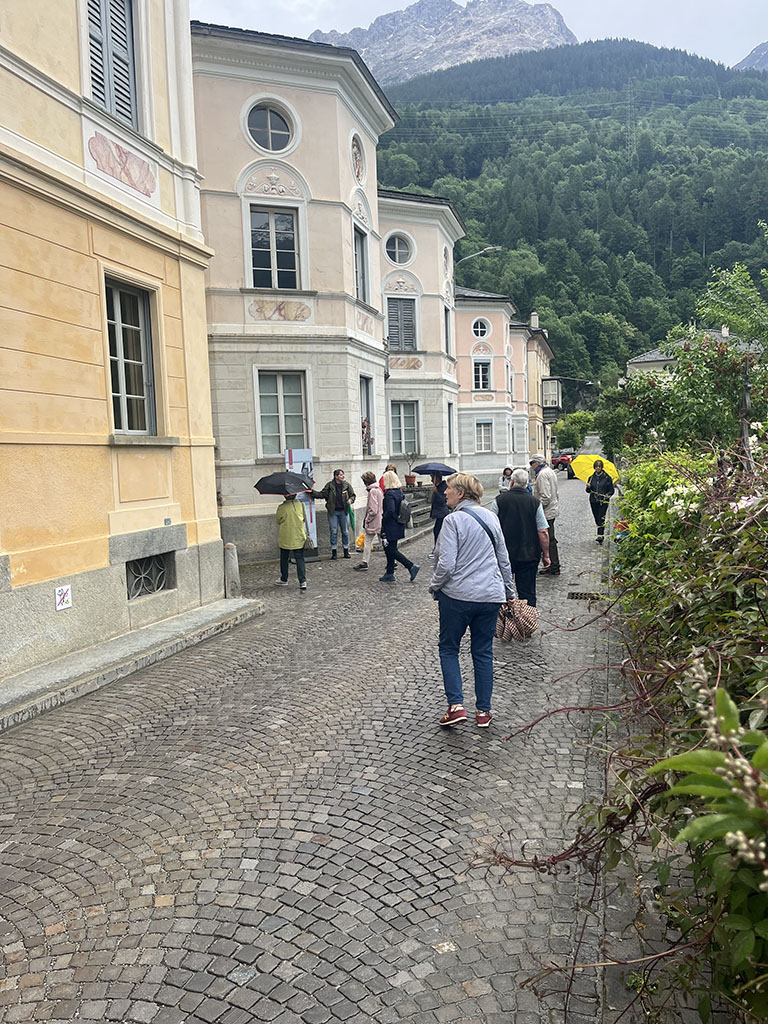 Giornate intense tra la Valtellina e Poschiavo. Esordio culinario da sogno a Teglio: oltre agli immancabili (ed eccellenti) pizzocheri, anche sciatt, affettati, formaggi, tiramisu. Il potente temporale che si è scatenato nel pomeriggio non ha distrubato la digestione, ma ci ha obbligato a rinunciare alla visita al giardino del così detto "Gaudì della Valtellina" a Grosio. Cena dunque all'albergo Sport Raselli, con accoglienza e servizio splendidi, un po' come in tutta la valle. Il martedì la pioggia ci ha risparmiato e abbiamo potuto godere a Cavaglia della sorpresa delle enormi marmitte scavate dall'acqua nella roccia. Un Parco dei ghiacciai tutto da scoprire e gustare, tenuto tra l'altro con grande cura. La Val Poschiavo si distingue proprio per questa attenzione alle bellezze del territorio e per il progetto bio che coinvolge quasi tutte le aziende. Nel pomeriggio visita guidata all'azienda di erbe Raselli, che produce tè e tisane, ovviamente biologiche, e fornisce tra l'altro Ricola e i giganti della distribuzione al dettaglio. La sera cena nella splendida cornice del ristorante e albergo Albrici, costruzione seicentesca con sale affrescate. L'ultima giornata è stata dedicata alla visita di Poschiavo, con le meravigliose case della via dei Palazzi, frutto dei guadagni dei pasticceri emigrati in tutta l'Europa. Un borgo pieno di storia e di storie, che ha ricevuto quest'anno il premio Wakker, assegnato ai luoghi che meglio curano il patrimonio. Chiusura del viaggio a Novate Mezzola in Valtellina con visita alla Brisval, azienda che produce bresaola con carni pregiate, compreso il waigu giapponese (400 euro al chilo!!!). Degustazione istruttiva (e buona) e visita che ci ha introdotto nei segreti della produzione della bresaola artigianale.