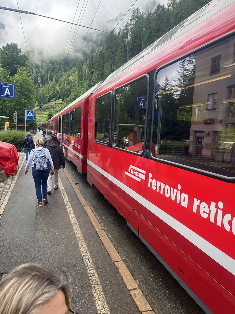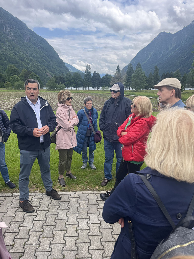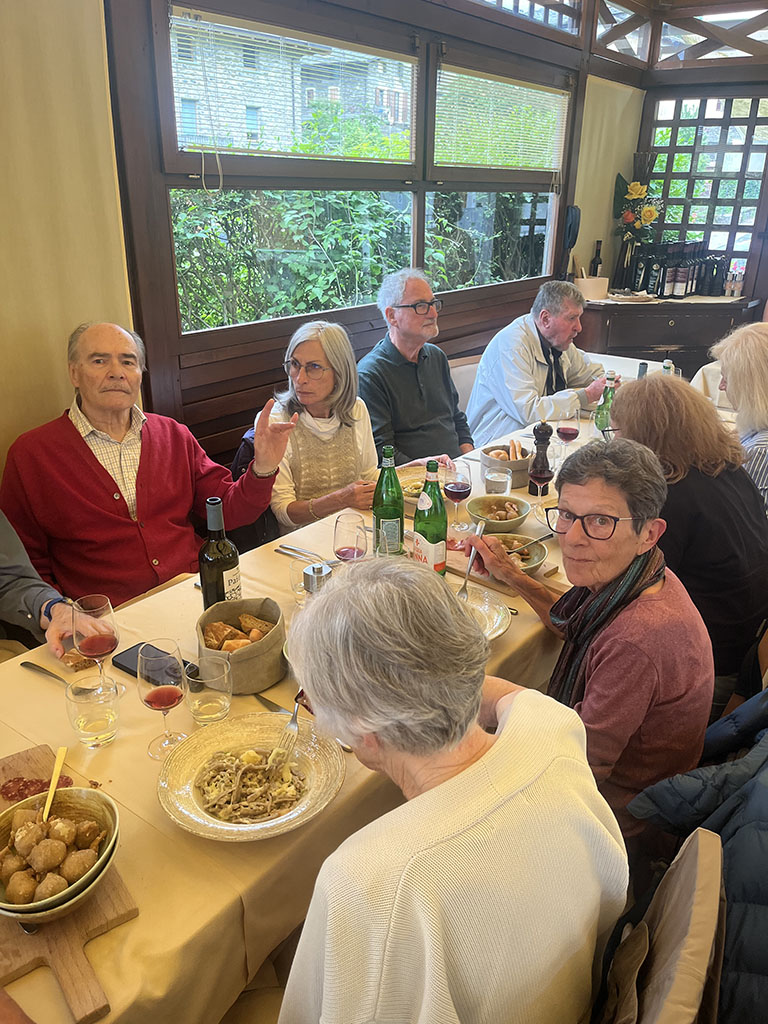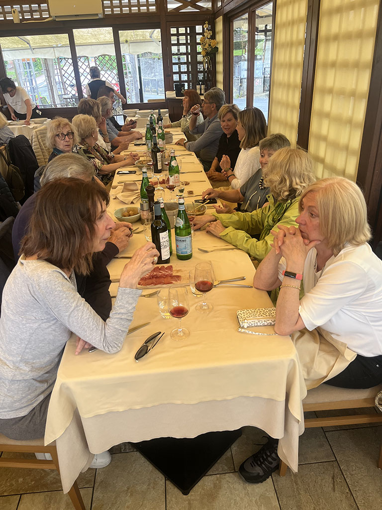 Giornate intense tra la Valtellina e Poschiavo. Esordio culinario da sogno a Teglio: oltre agli immancabili (ed eccellenti) pizzocheri, anche sciatt, affettati, formaggi, tiramisu. Il potente temporale che si è scatenato nel pomeriggio non ha distrubato la digestione, ma ci ha obbligato a rinunciare alla visita al giardino del così detto "Gaudì della Valtellina" a Grosio. Cena dunque all'albergo Sport Raselli, con accoglienza e servizio splendidi, un po' come in tutta la valle. Il martedì la pioggia ci ha risparmiato e abbiamo potuto godere a Cavaglia della sorpresa delle enormi marmitte scavate dall'acqua nella roccia. Un Parco dei ghiacciai tutto da scoprire e gustare, tenuto tra l'altro con grande cura. La Val Poschiavo si distingue proprio per questa attenzione alle bellezze del territorio e per il progetto bio che coinvolge quasi tutte le aziende. Nel pomeriggio visita guidata all'azienda di erbe Raselli, che produce tè e tisane, ovviamente biologiche, e fornisce tra l'altro Ricola e i giganti della distribuzione al dettaglio. La sera cena nella splendida cornice del ristorante e albergo Albrici, costruzione seicentesca con sale affrescate. L'ultima giornata è stata dedicata alla visita di Poschiavo, con le meravigliose case della via dei Palazzi, frutto dei guadagni dei pasticceri emigrati in tutta l'Europa. Un borgo pieno di storia e di storie, che ha ricevuto quest'anno il premio Wakker, assegnato ai luoghi che meglio curano il patrimonio. Chiusura del viaggio a Novate Mezzola in Valtellina con visita alla Brisval, azienda che produce bresaola con carni pregiate, compreso il waigu giapponese (400 euro al chilo!!!). Degustazione istruttiva (e buona) e visita che ci ha introdotto nei segreti della produzione della bresaola artigianale.