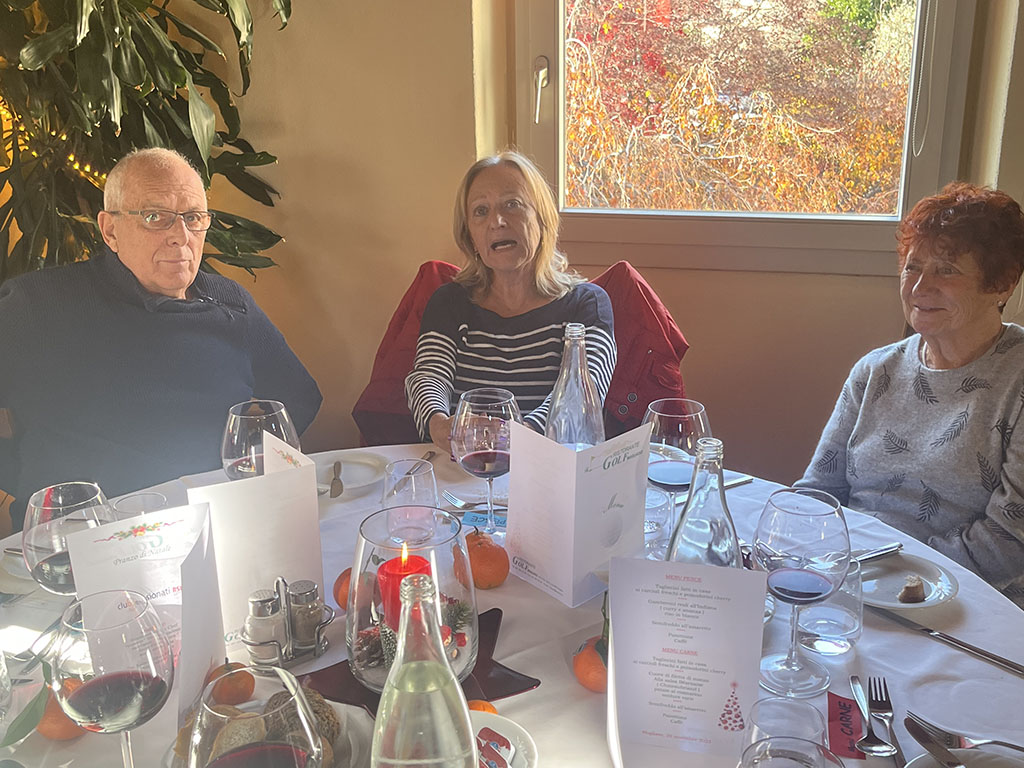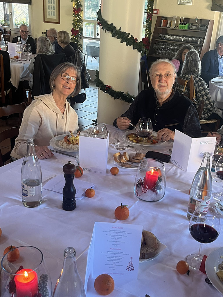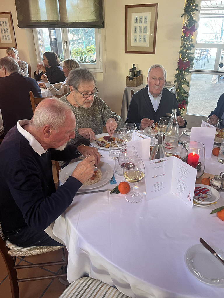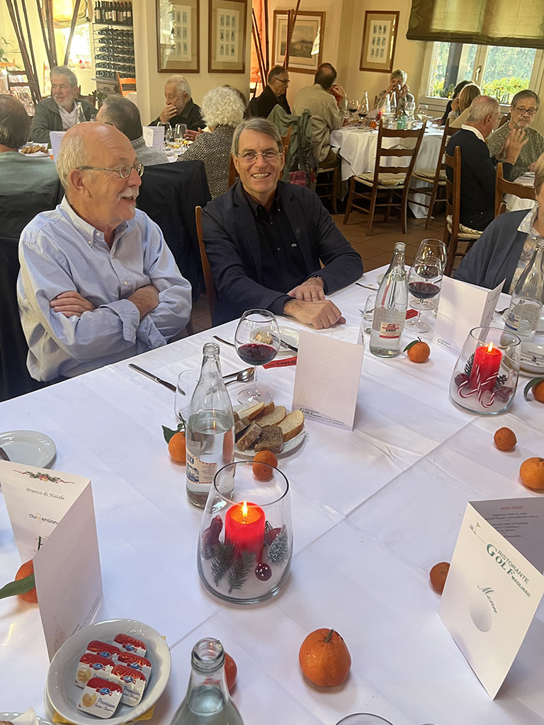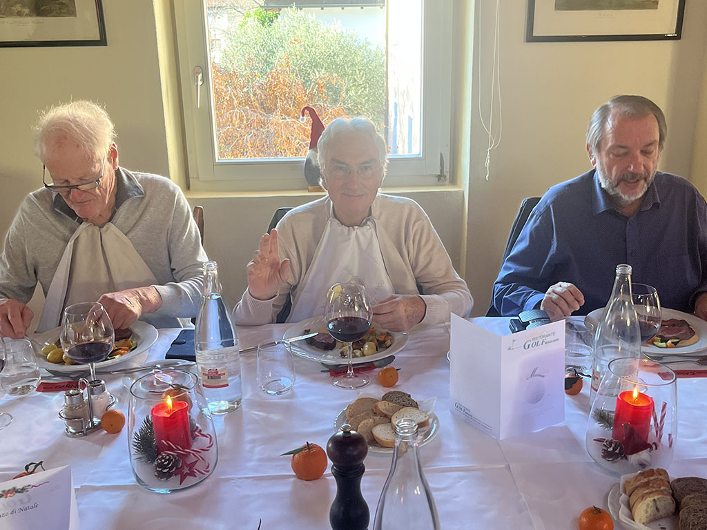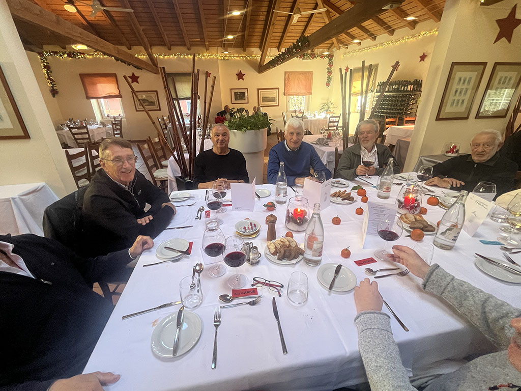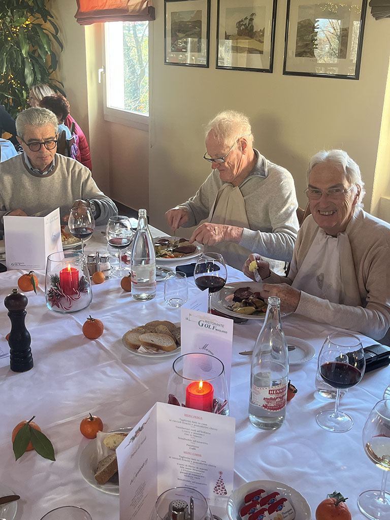 Una cinquantina di soci presenti al classico pranzo annuale, come ormai tradizione vuole, al ristorante del Golf di Magliaso con la consueta ospitalità e qualità del servizio dei coniugi Pereira e della loro brigata di cucina. Tagliolini ai carciofi e pomodorini, filetto con salsa béarnaise (oppure gamberoni al curry) e semifreddo all'amaretto, prima del classico amarone. Clima gioviale e rilassato, come in ogni occasione di incontro. Saluti, brindisi e appuntamento al panettone del 10 dicembre.
